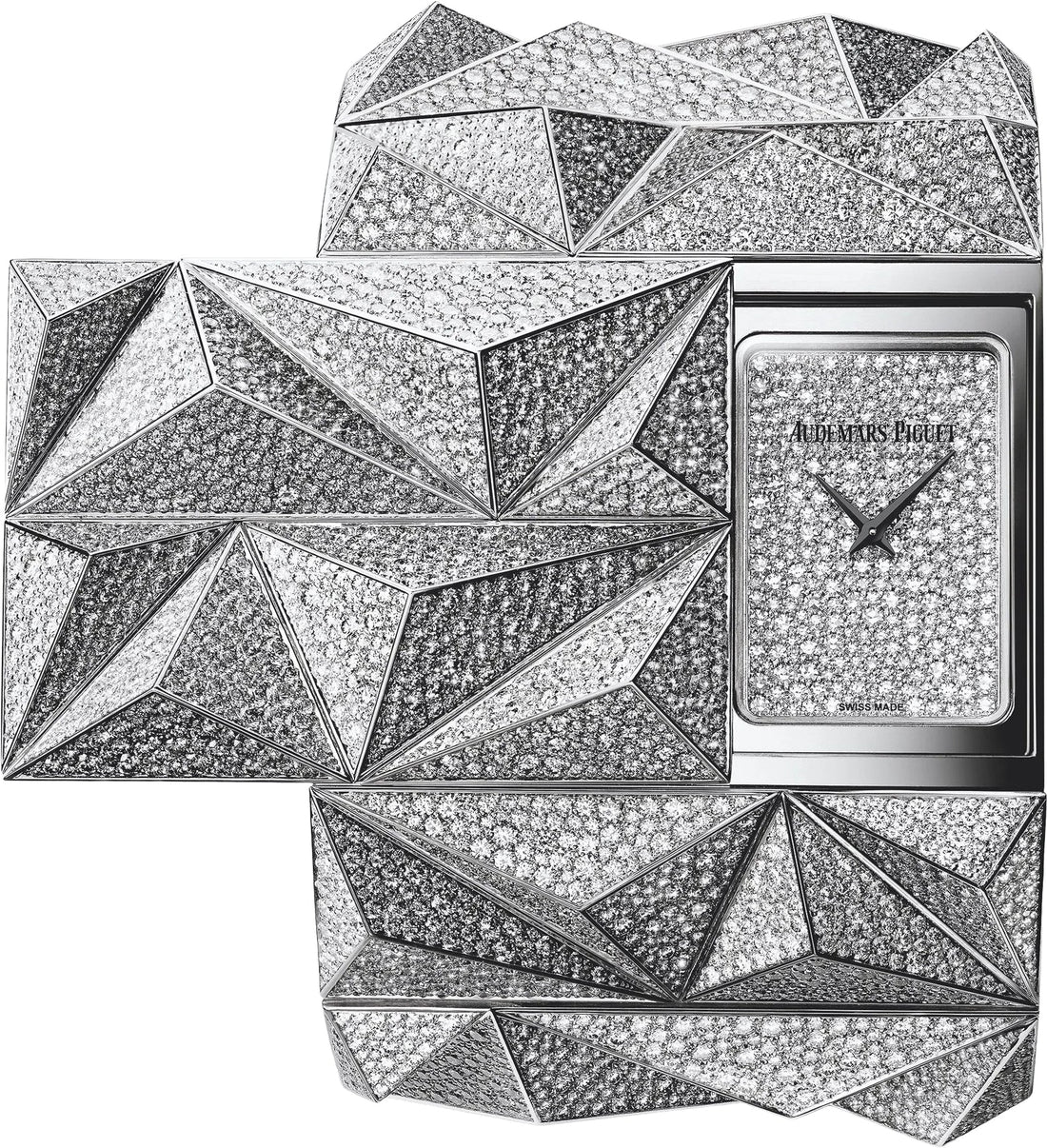 39.5 mm 18K white gold case entirely set with brilliant-cut diamonds, 9.8 mm thick, glareproofed...