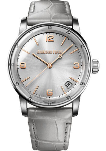 41 mm 18K pink gold case, 10.7 mm thick, 18K white gold back with glareproofed sapphire crystal, 18K white gold end pieces, 18K white gold bezel, double glareproofed sapphire crystal, grey lacquered dial with sunray pattern base, pink gold applied hour-markers and hands, grey lacquered inner bezel, Calibre 4302 selfwinding movement with hours, minutes, centre seconds and date, approximately 70 hours of power reserve, black alligator strap, 18K white gold pin buckle. Water resistant to 30 m.